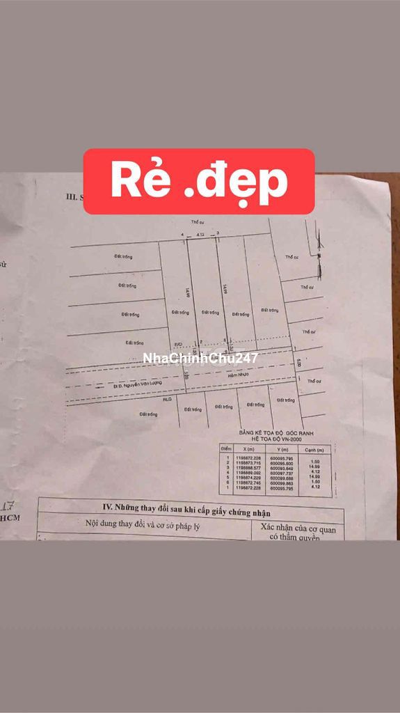 Dự án: Thông tin chi tiết: 🆘🆘🆘 CHÍNH CHỦ *** 1 LÔ ĐẤT RẺ .ĐẸP .HIẾM. NGUYỄN VĂN LƯỢNG ( kế Cityland cực kỳ đẳng cấp ) ace kd nua xây nhà bán . Ở cho thuê quá lý tưởng ( khu đó rất hiếm nhiều lúc có tiền muốn mua k có đâu ) 🆘🆘DT. 4.2. X17 m VUÔNG CHUẨN - XE HƠI RA VÀO THOẢI MÁI - KHU VIP TOÀN ĐẠI GIA- 💰 7.xx🧄 TL📍 Địa chỉ: Nguyễn Văn Lượng, An Hội Đông, TP.HCM ✨ Hẻm xe hơi, đất vuông vức cực đẹp – xây dựng tự do, XUNG QUANH CAO TẦNG 🏡 Hiện trạng: Chủ đã làm mái che, đang cho thuê tạo dòng tiền ổn định. Khách mua có thể tiếp tục khai thác hoặc tháo dỡ xây mới tùy nhu cầu. 🌟 Vị trí đắc địa:• Nằm ngay trục đường Nguyễn Văn Lượng sầm uất, kết nối nhanh Gò Vấp – trung tâm TP • Khu dân cư hiện hữu, an ninh, xung quanh đầy đủ tiện ích: chợ, trường học, siêu thị • Thích hợp xây ở, đầu tư giữ tài sản hoặc khai thác cho thuê lâu dài ☎️☎️☎️ LH PHUONG ANH ***