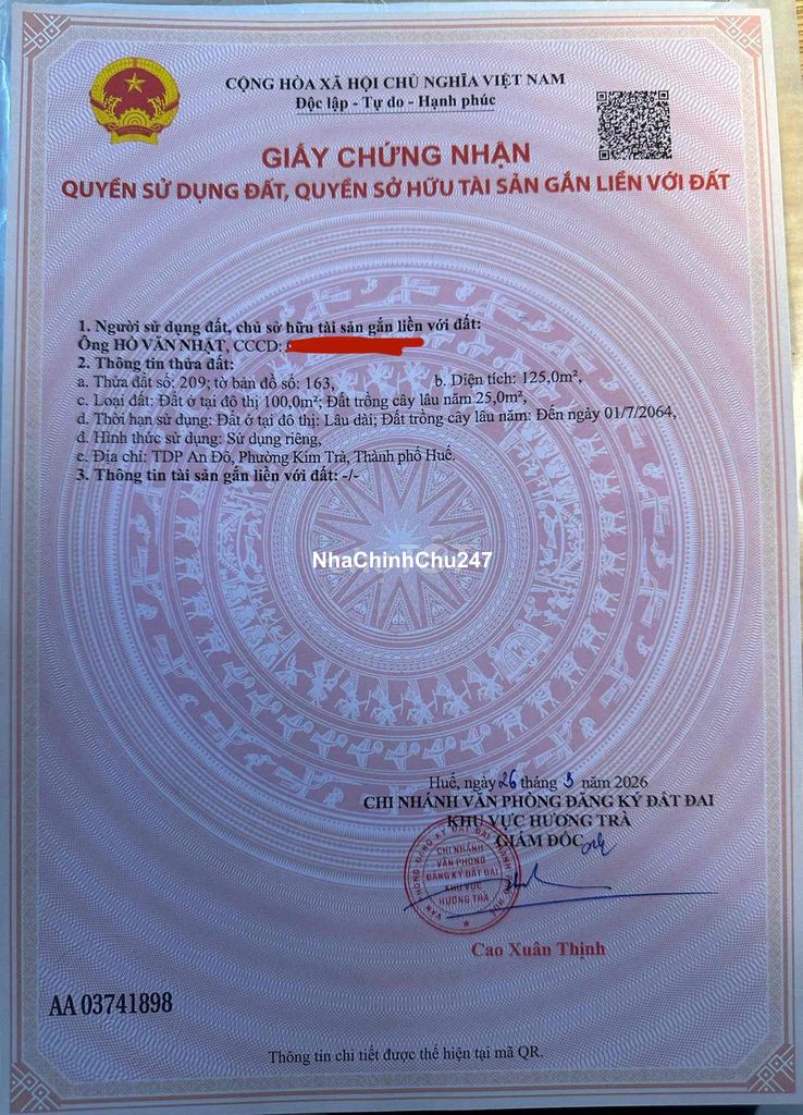 Dự án: Thông tin chi tiết: ĐẤT AN ĐÔ Diện tích 125m (100m Thổ cư) 5*25 Đường hiện trạng Betong 3,5m. Sổ mới ra 26/03/2026.