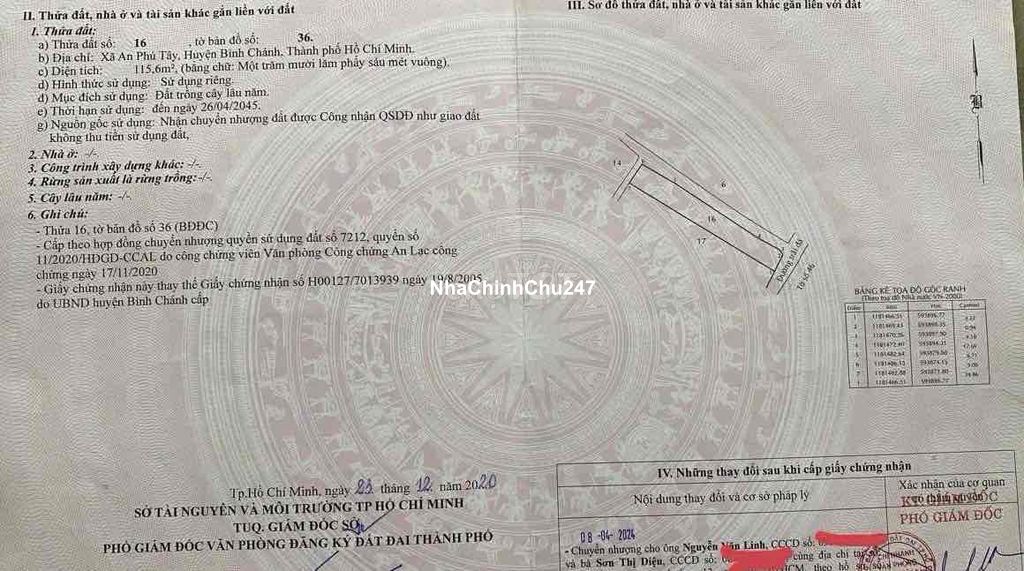 Chính chủ bán ! lô đất xã An Phú Tây ( xã bình Chánh mới - HCM ) Dat cln qh dat odt Dtich : 115.6m . Nở hâu -Có hòn non bộ , cá koi -có nhiều cây ăn trái -xây tường rào chắc chắn, điện nước đầy đủ , kdc hiện hữu ..vv Sổ hồng riêng , đối điện dường số 9 kdc An Phú Tây , cách 50m ra mặt tiền đường An phú tây-Hưng Long ( tiện ích 👉chỉ vài bước chân đen Ủy ban , chợ ,trường học ..vv) - Góc 2 mặt tiền Thiện chí bớt lộc Lừa đảo né dùm giúp e