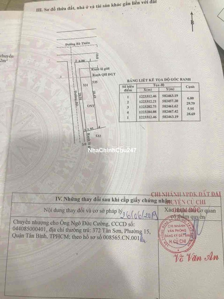 Đất chính chủ giá rẻ nhất củ chi