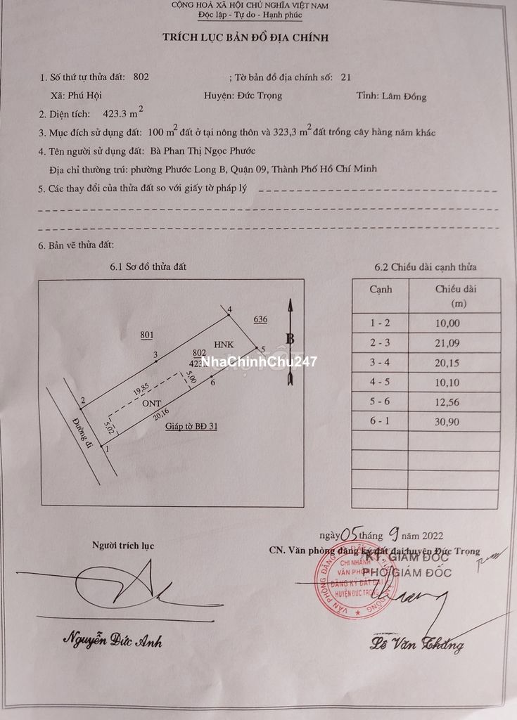 Đất thổ cư diện tích 10x43m, gần cổng khu công nghiệp Phú Hội, Đức Trọng Lâm Đồng. Diện tích CN: 423.3m². Có 100m² đất thổ cư. Ngang 10m dài 42m. - Hướng: Nam. - Vị trí: Cách cổng khu công nghiệp Phú Hội khoảng 100m, cách mặt đường thống nhất 50m. Thuộc khu dân cư đông đúc, mua bán tấp nập. - Thích hợp xây nhà ở định cư, xây dãy trọ kinh doanh (cách khu công nghiệp chỉ hơn 100m). Hoặc đầu tư trung, dài hạn sinh lãi cao. Liên hệ mình theo số điện thoại ở trên góc phải. Cảm ơn vì đã xem tin.