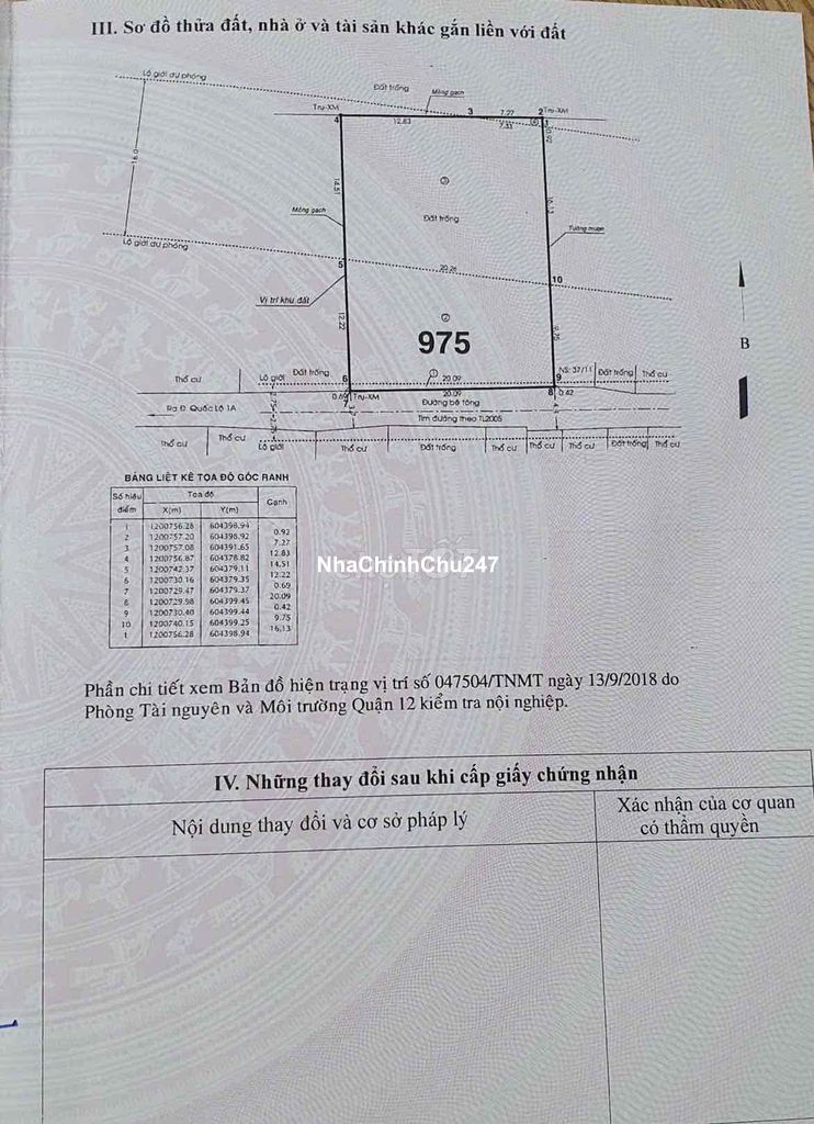Chính chủ cần bán lô đất, thạnh Lộc, quận 12