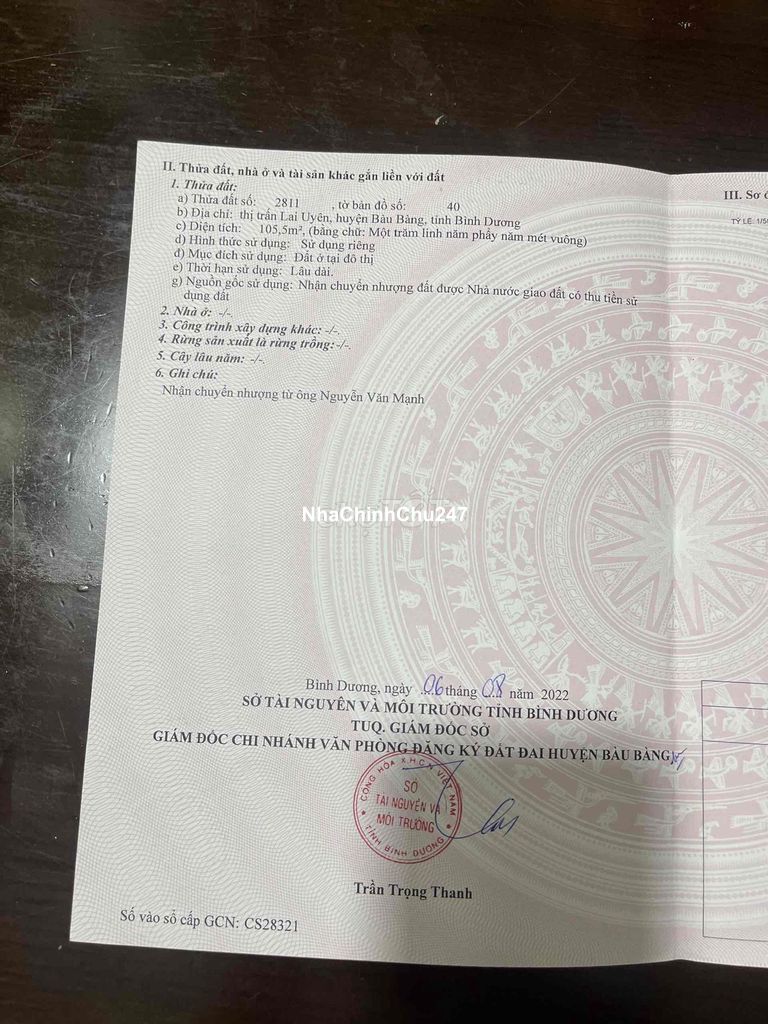 Dự án: Thông tin chi tiết: Bán lô đất chính chủ. Nằm KDC phúc đạt. Liền kề trung tâm hành chính Bàu Bàng. Cạnh KCN BÀU BÀNG với nhiều chuyên gia và lao động nước ngoài. Giá Bán Chính Chủ. Sổ sẵn công chứng ngay. Liên hệ: ***