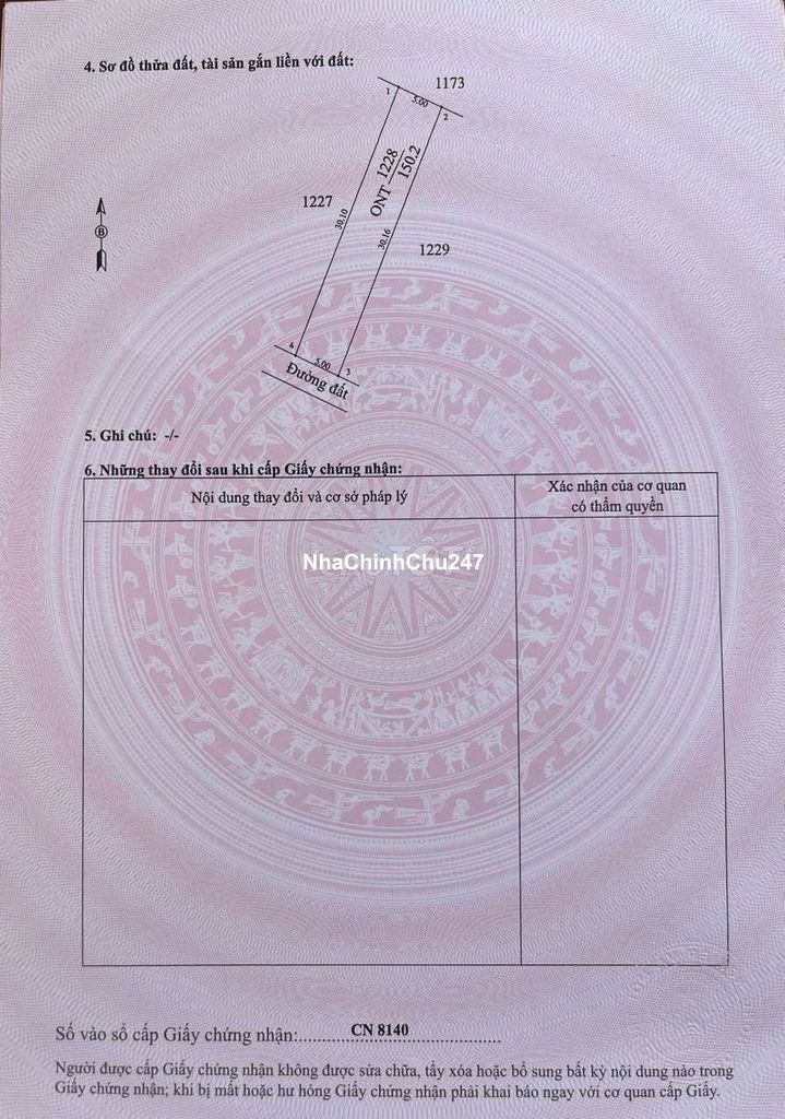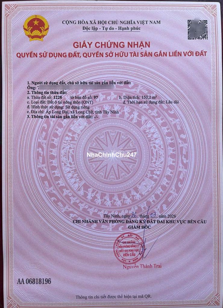 Xã Long Chữ Tây Ninh (Bến Cầu Cũ) + 5×30=150 thổ cư 100% Giá 300 triệu. + Tổng giá, bao tất cả chi phí ra sổ. + Không phát sinh. tôi Có 5 sổ tất cả + liên hệ lấy Vị trí nha !! gần chọ và trường học 500m là đến