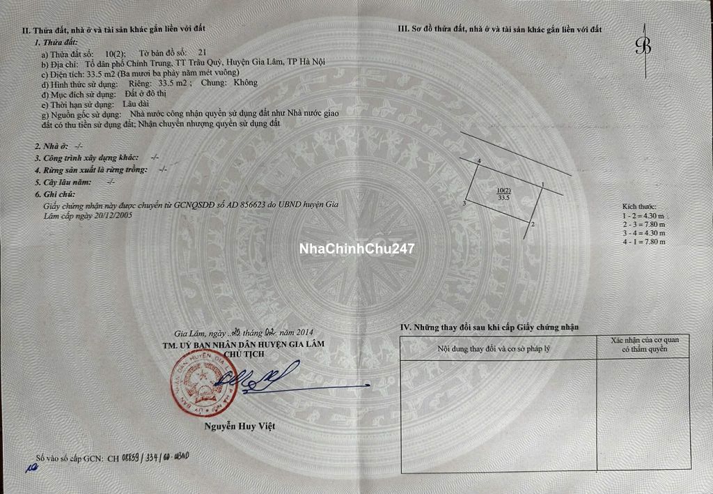 Bán nhà đất chính chủ Ngô Xuân Quảng- Trâu Quỳ - Gia Lâm, ô tô vào cửa