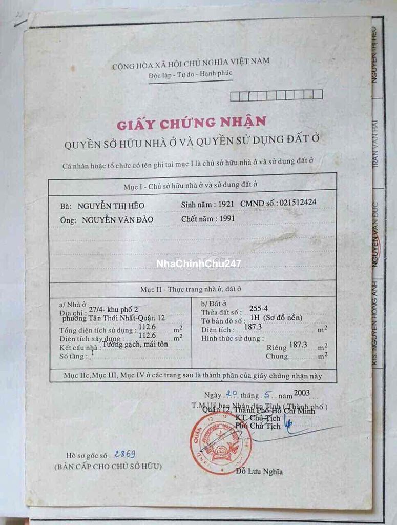 Dự án: Thông tin chi tiết: BÁN NHÀ QUẬN 12 - CHÍNH CHỦ - SỔ HỒNG RIÊNG Giá bán: 13 tỷ (Có thương lượng cho khách thiện chí) 📍 Vị trí đắc địa: Địa chỉ: 27/4 khu phố 2, Phường Tân Thới Nhất, Quận 12, TP. Hồ Chí Minh. Khu dân cư ổn định, an ninh, giao thông thuận tiện. (Ngang.7,6 m x Dài.24m) - nở hậu 8,1m-Thổ cư hoàn toàn. Diện tích : 187m . Kết cấu: Nhà tường gạch, mái tôn (phù hợp để ở ngay hoặc xây mới, làm kho xưởng, căn hộ dịch vụ). Pháp lý: Sổ hồng chính chủ, sang tên nhanh chóng. ✨ Ưu điểm nổi bật: Diện tích đất lớn gần 200m , cực kỳ hiếm có trong khu vực. Phường Tân Thới Nhất là khu vực đang phát triển mạnh, gần các trục đường lớn, đầy đủ tiện ích: trường học, chợ, siêu thị... Phù hợp để đầu tư sinh lời hoặc định cư lâu dài.