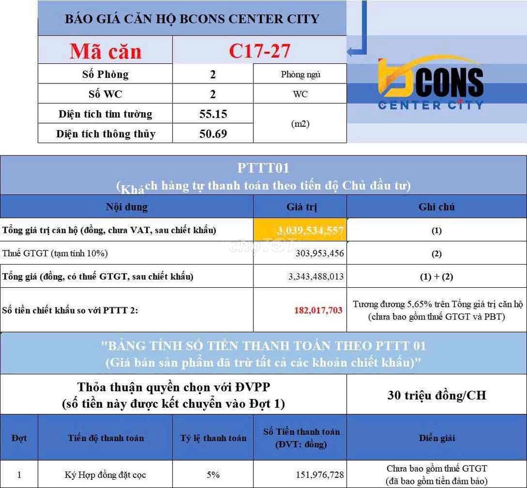 Bcons Center City Căn Giá Gốc Đợt 1 Từ Chủ Đầu Tư