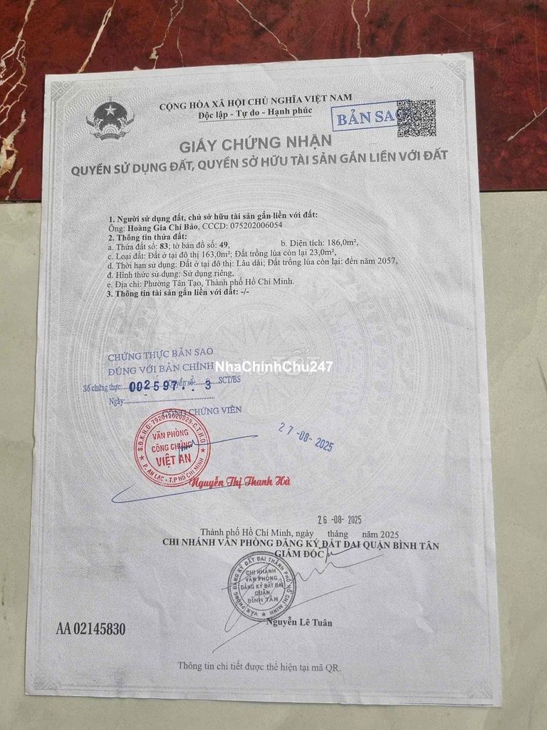 Diện tích: 186 m2
