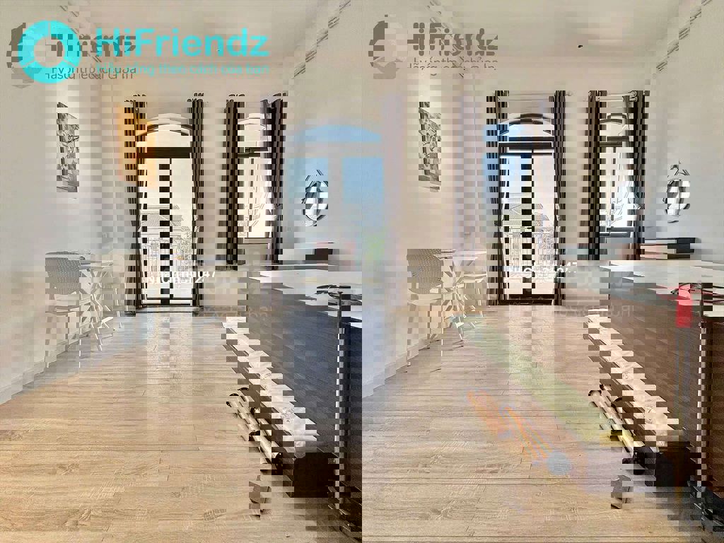 Phòng đầy đủ nội thất Giặt sấy dưới trệt Hầm xe rộng Khuôn viên hồ bơi, để oto Ban công đón nắng. Ưng ib em