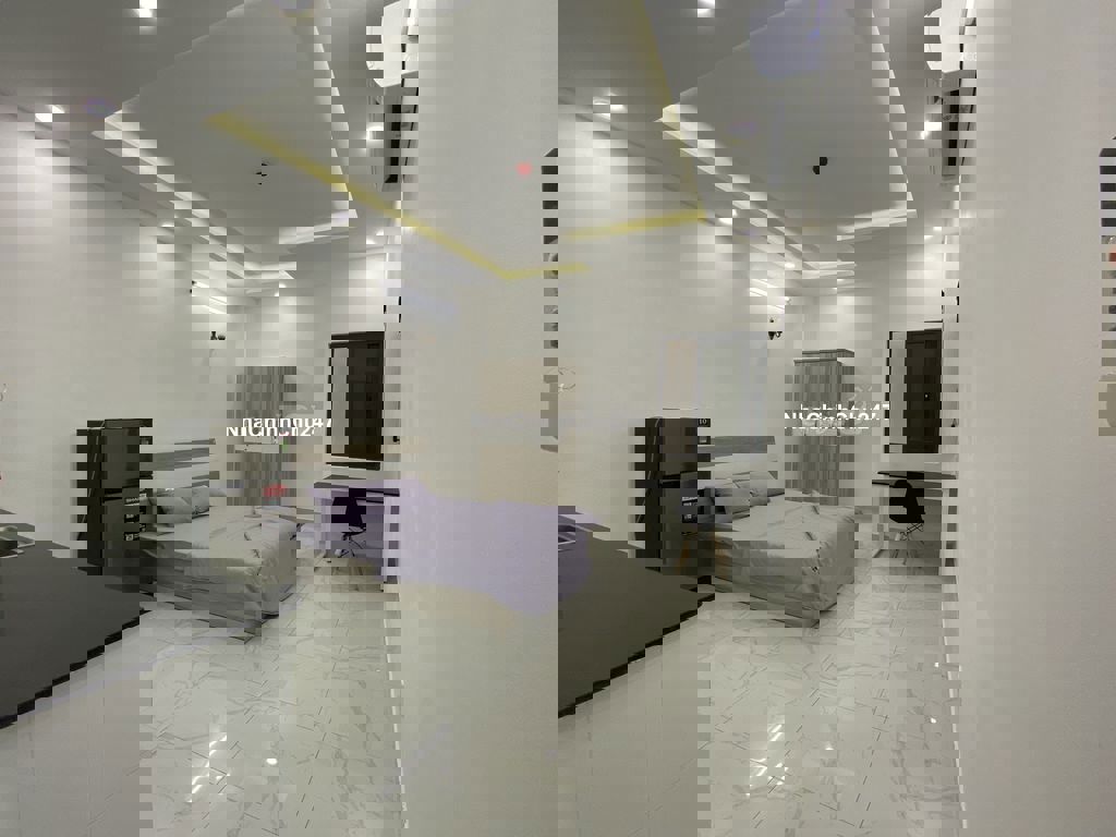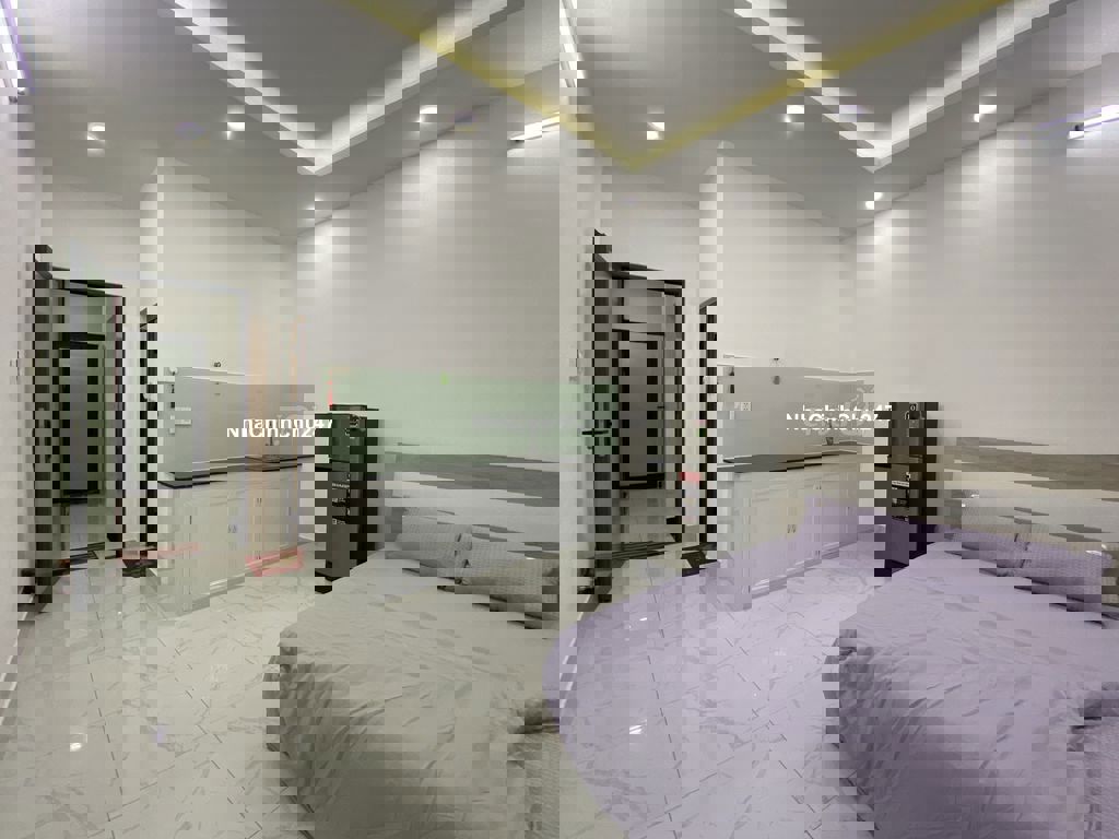 Nội thất - full nội thất mới: Tủ, gường, nệm, bàn, ghế, tủ lạnh, kệ bếp, máy lạnh inverter Nhà vệ sinh sử dụng trang thiết bị cao cấp - nước nóng Tòa nhà có thang máy - khóa vân tay - camera phủ khắp nhà . Tòa nhà chỉ có 09 phòng nên rất ổn định và an ninh, yên tĩnh Phí dịch vụ: nước 100k/người, Wifi, rác. vệ sinh hành lang, máy giặt....: 200k/phòngtháng, điện 3.5k/khw
