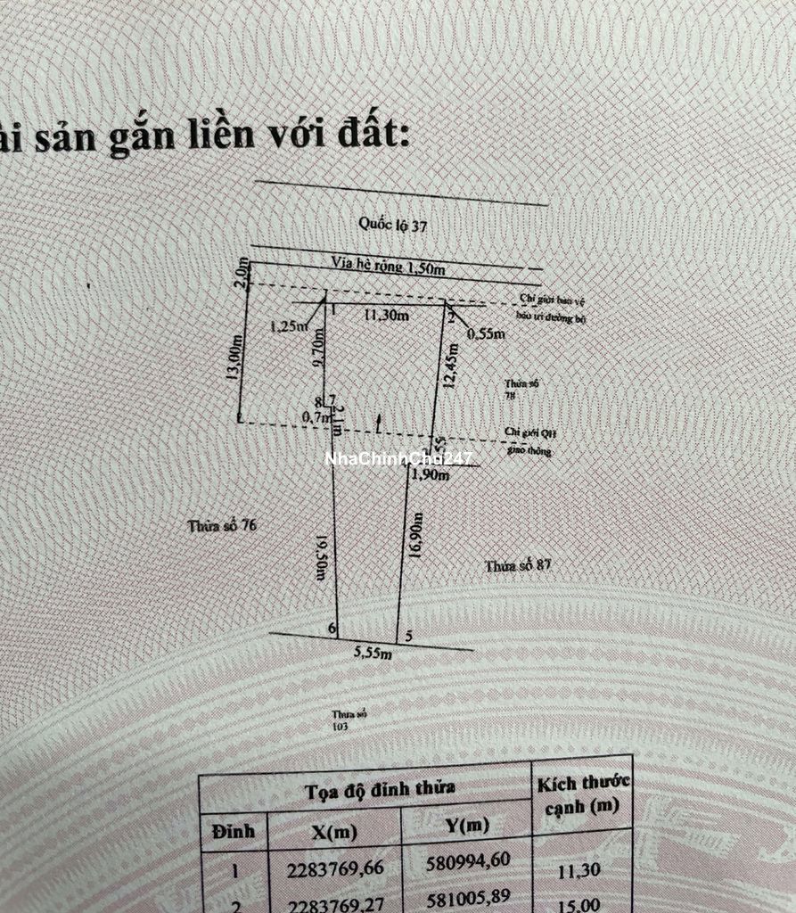 Bán lô đất mặt đường quốc lộ 37 tại Vĩnh Am, Hải Phòng (*** / ***) + Tổng diện tích 260,8m2, mặt tiền 11.30m tại vị trí đắc điạ thuận tiện kinh doanh, buôn bán, xưởng sản xuất. + Sẵn nhà 3 tầng về ở được luôn + Cách cầu Lạng Am 300m, Trường THPT Nguyễn Bỉnh Khiêm, cầu đá Nguyễn Bỉnh Khiêm 1km. + Dân trí xung quanh tốt và thân thiện + Hỗ trợ sang tên + Ra lộc nhiệt tình + Giá cả thương lượng + Liên hệ (***/***)