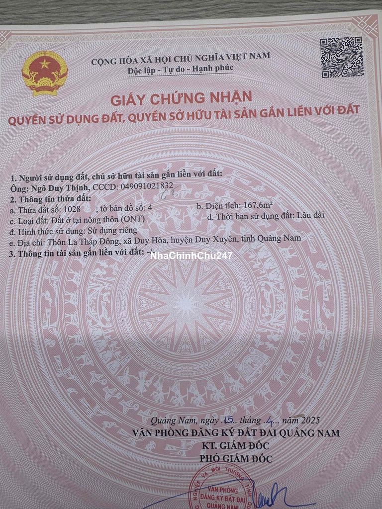 Chính chủ cần bán nhanh đất giá tốt ở Lang Châu Nam- Duy Phước 420m²