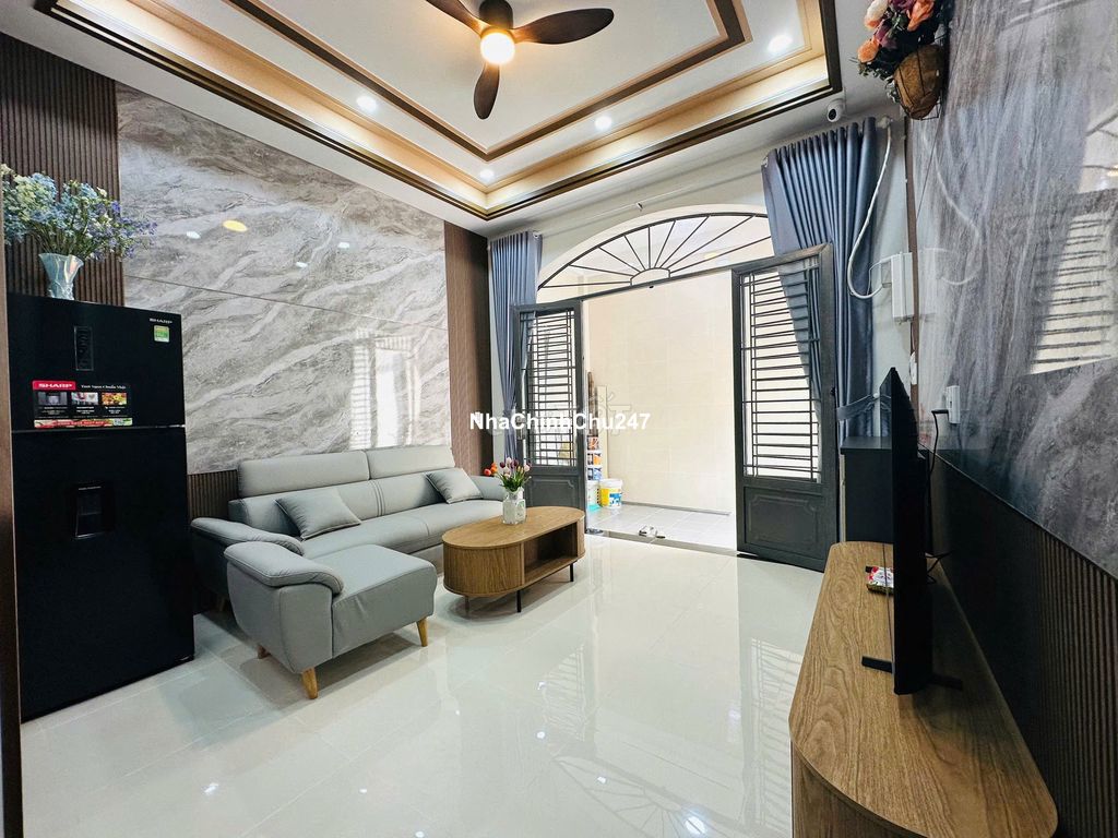 [Chính chủ] bán Nhà đẹp ngay Quang Trung P10 đối diện UBND GV, ngay trường THCS Quang Trung. Vị trí cách hẻm xe tải 15m. ✌️Diện tích siêu đẹp(4x16) vuông A4, công nhận 63,2m2. Gồm sân đỗ xe, phòng khách, phòng bếp, 3pn, đặc biet 2pn dưới trệt, đã đầy đủ tiện nghi. ✌️Khu vực an ninh, siêu yên tĩnh, không ngập nước. ✌️Giá mới 6,5 tỷ bớt lộc HHMG gửi ace