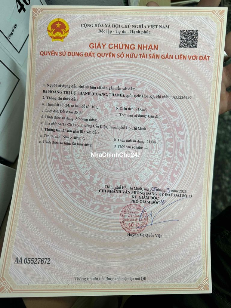 Dự án: Thông tin chi tiết: Chính chủ gửi ace môi giới bán phụ ,huê hồng nhận đủ , giá 5950 ,thương lượng , huê hồng caoo. Môi giới nhận đủ, Không Tiếp báo không QC Mặt tiền 133ZZ hoa lan, 64/19 cù lao p cầu kiệu Phú Nhuận Phù hợp Khách mua về xây mới 4 tầng , Dtcn 4,05(4,1) x 5,2m dtcn 21m2 Dtsd 4,05 x6 m 24m2 - kết cấu nhà nát xem như đất , Sân chung phía sau đã chia đều 2 nhà sử dụng, 0,85m x 4m, - hẻm hông nhưng chỉ có 1 căn phía sau nên ko lộ giới, - đường trước nhà 6m 2 ôtô song song ok, - nhà kế bên mặt tiền 133ZZ hoa lan. Lh em 9chu *** duy tuệ
