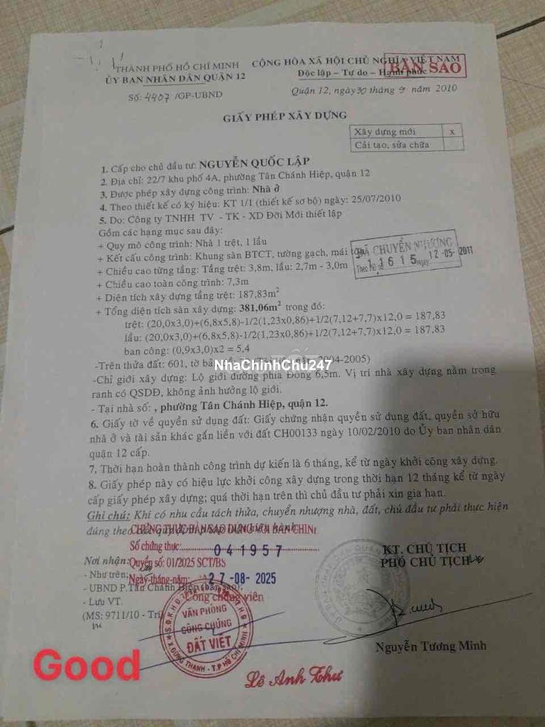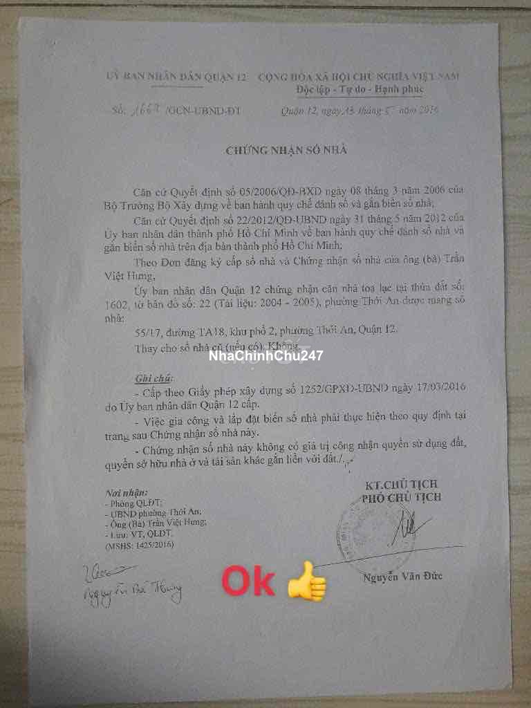 🏡 CHÍNH CHỦ BÁN NHÀ TCH – Q12 💰 Giá: 1.55 tỷ TL ☘️ DTSD 54m² – 1 trệt 1 lầu – 2PN, 2WC ☘️ Tiện ích: ngay ngã 4 Nguyễn Ảnh Thủ+ Huỳnh Thị Hai gần chợ Bắp, chợ Ngã Ba Bầu, trường C1-2-3, CĐ – ĐH, trung tâm mua sắm; vài bước chân ra trạm xe buýt đi khắp TP. ✅ Pháp lý chuẩn: Sổ hồng, khu dân cư hiện hữu, GPXD – hoàn công đầy đủ (CCVB – xem sổ trước khi cọc). 📞 LH chính chủ: (Phượng TL trực tiếp)