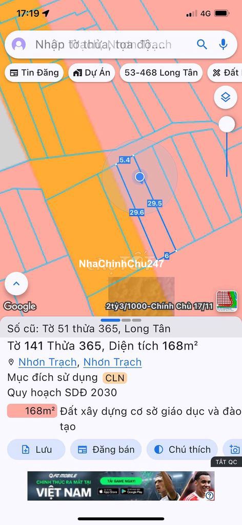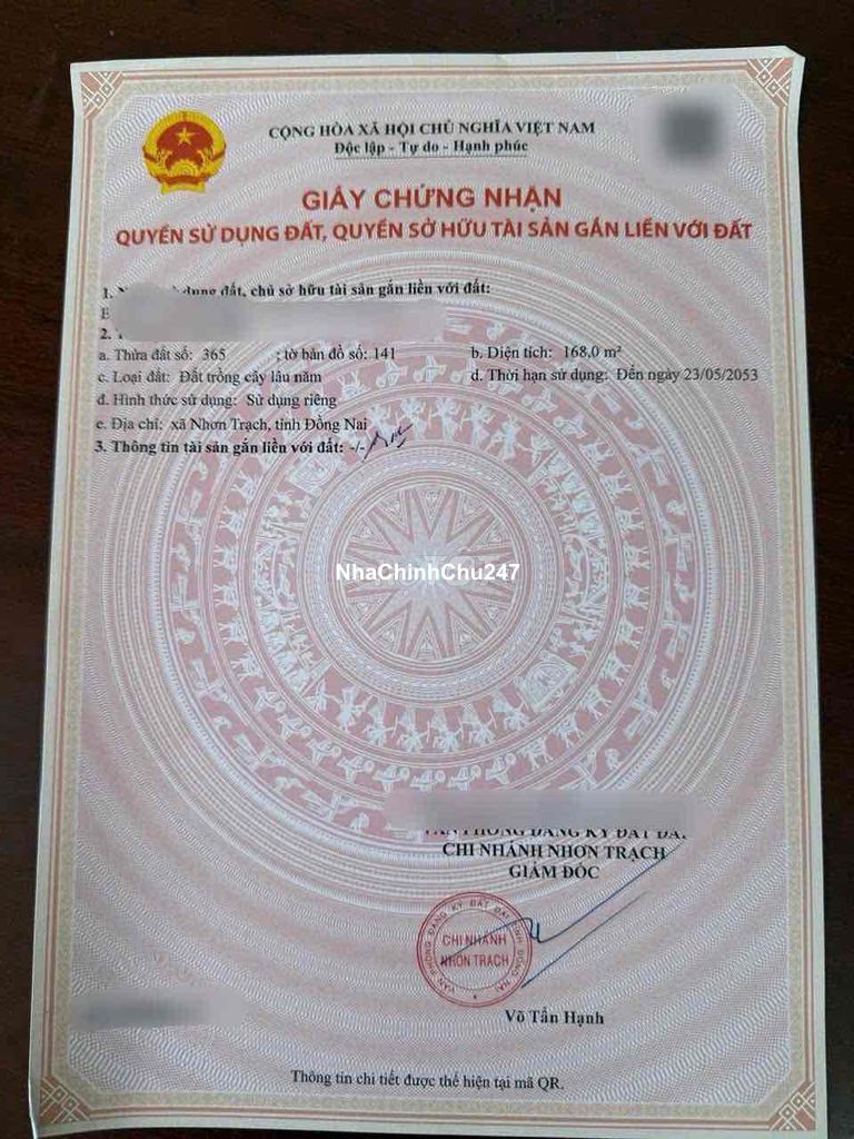 Đất sổ hồng riêng 168m2 (5.5x29) nở hậu đuôi 6m hẻm xe hơi đường Lý Thái Tổ xã Long Tân Nhơn Trạch. Hiện trạng là đất cây lâu năm, khu dân cư hiện hữu đường thông, đi bộ ra chợ Lý Thái Tổ, tiện ích gần dự án Swan Park, gần Vành Đai 3 về Hồ Chí Minh 5 km. Sổ hiển thị đường gia thông, vay được ngân hàng. Liên hệ Zalo: ***