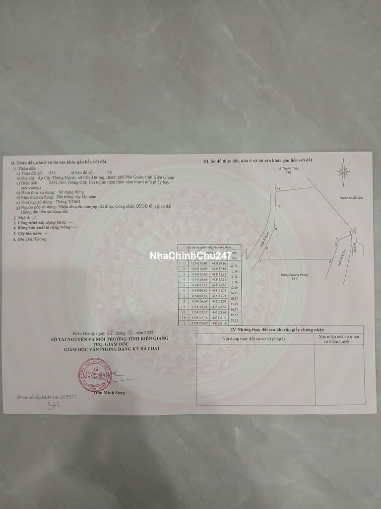 Tôi chính chủ cần bán khoản 850m2 đất trong sổ đất hơn 2000m2 trong hẻm homstay Nắng House, ấp cây thông ngoài, Xã cửa Dương. Đặc Khu Phú Quốc. Đất Qui hoạch Đất ở, ko dính dự án nào hết. kế bên đất là suối đã dc kè suối chắc chắn. Bán Giá 4,8 tỉ/850m2 đất ( Bao tiền tách sổ). Liên hệ trực tiếp để biết thêm chi tiết