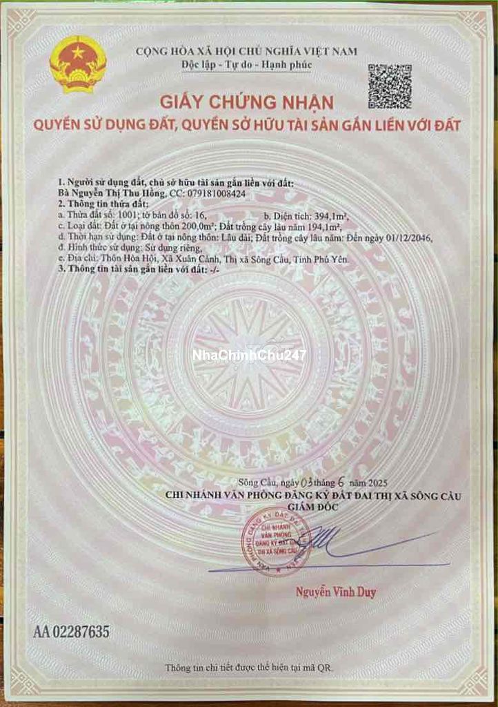 - Đất nông nghiệp có thổ cư 200m - 2 mặt tiền xe ô tô vào đc - Gần trường học cấp 1,2,3 - Cách biển 1000m - Gần khu nuôi trồng thuỷ hải sản - Thuận tiện cho kinh doanh và ở - Sổ hồng chính chủ (2025)