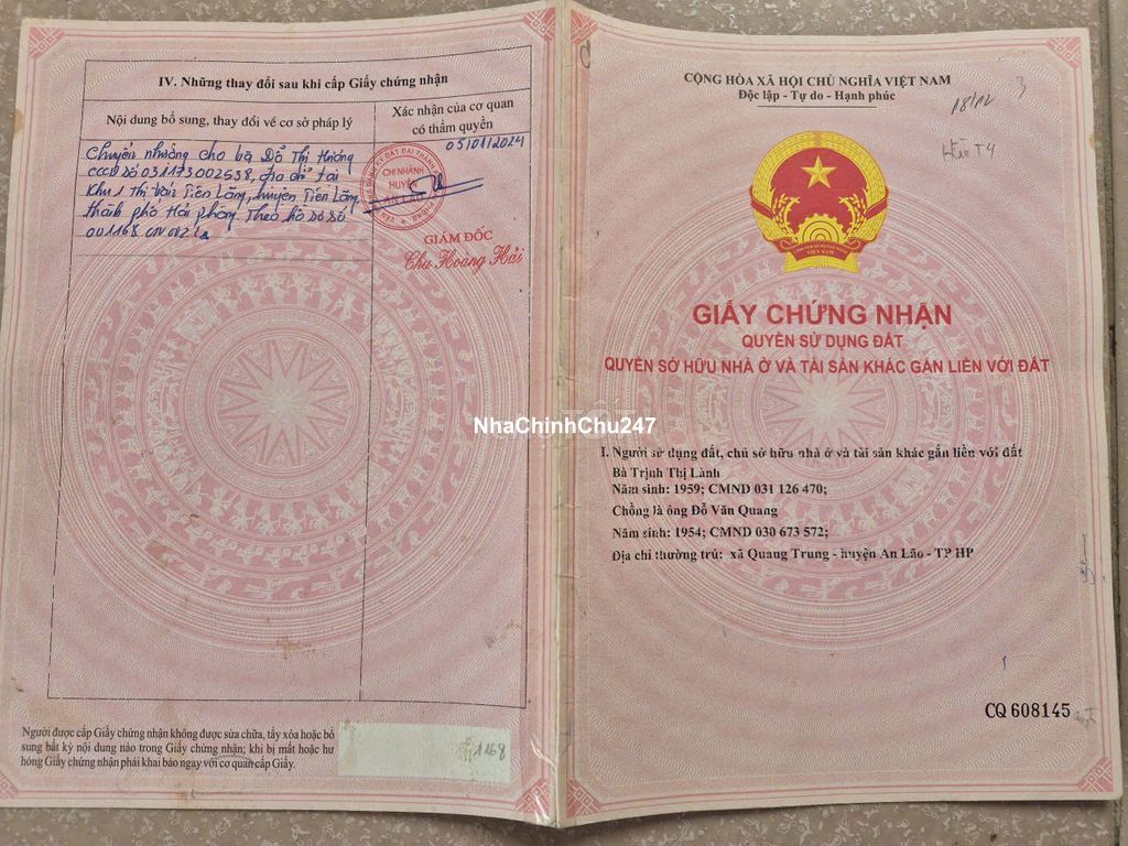 CHÍNH CHỦ CẦN BÁN LÔ ĐẤT ĐẸP TẠI AN LÃO – HẢI PHÒNG – Địa chỉ: Thôn Tân Trung, xã Quang Trung, huyện An Lão – Diện tích: 108m² – Sổ đỏ chính chủ, pháp lý rõ ràng – Đất ở lâu dài – Khu dân cư ổn định, gần đường giao thông thuận tiện đi lại – Xung quanh đầy đủ tiện ích gần trường học, chợ kênh, gần ql10… – Gần ubnd An Quang mới dưới 1km, gần cầu B49. – Thích hợp xây nhà hoặc đầu tư lâu dài Giá bán: 3 tỷ