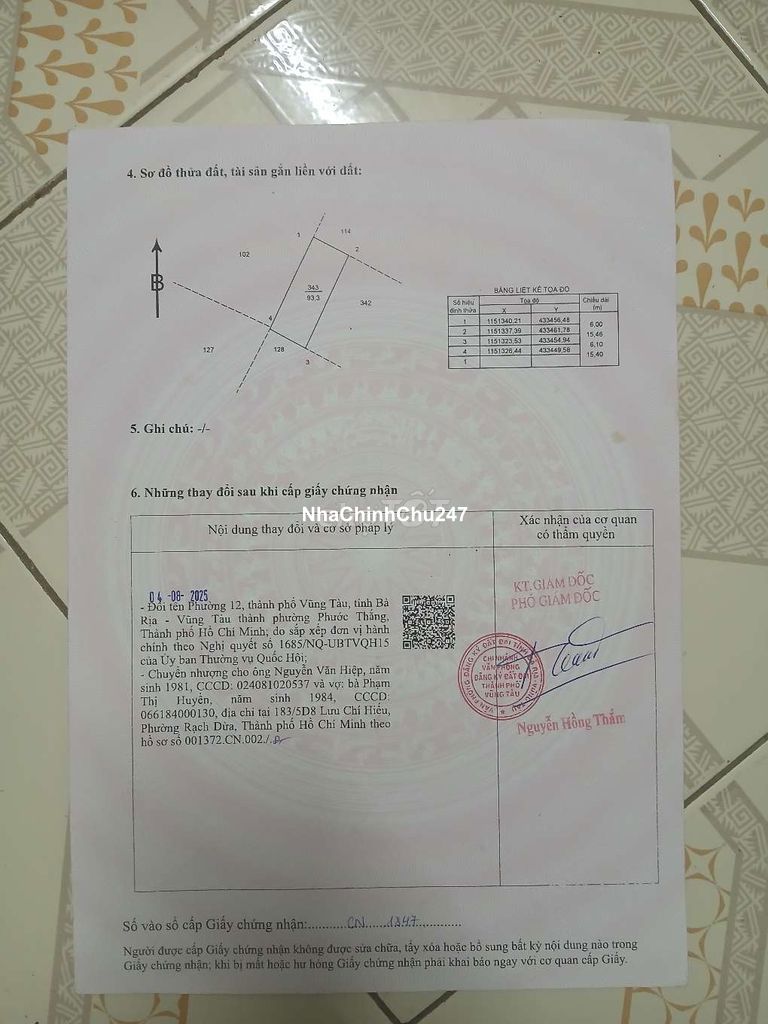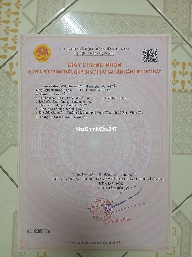 Chính chủ cần bán lô đất đường 30/4, Phước thắng Đường A3 đi vào vài trăm mét Pháp lý: Đất sổ riêng NN, diện tích 93,3 m2 ( 6x15) công chứng sang tên ok.