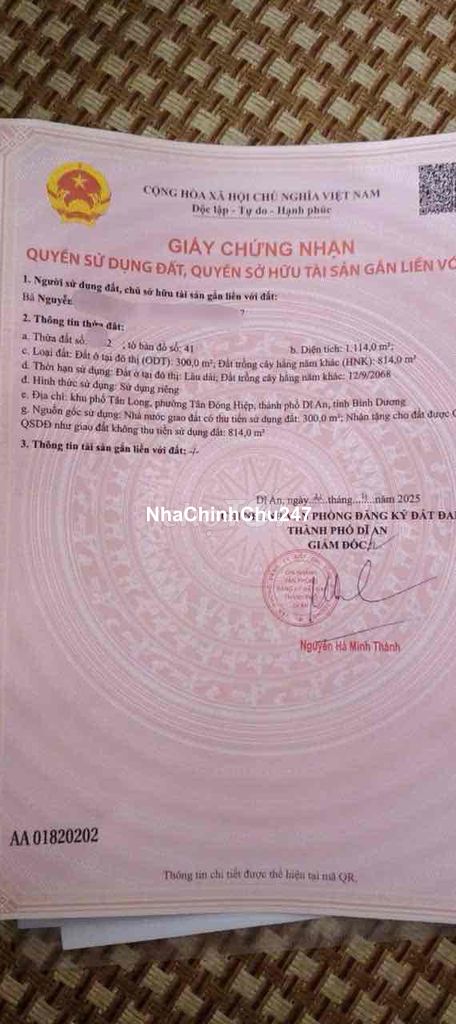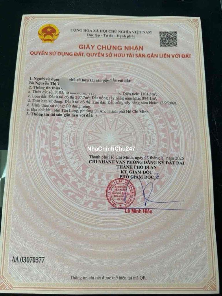chính chủ cần bán lô đất gồm 2 sổ tại phường Dĩ An