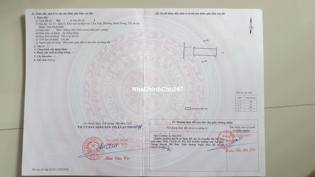 LÔ 100m2, xây dựng liền. Ngay khu Chợ Mới An Nhơn. Chính chủ.