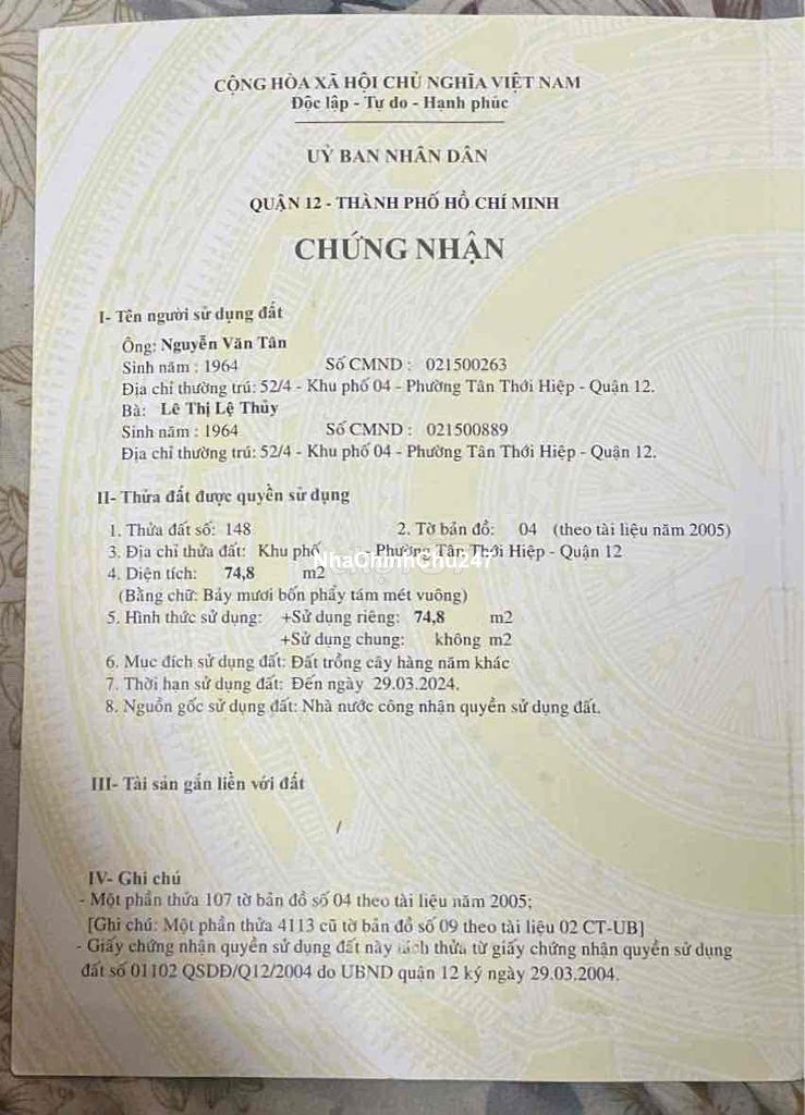 Chính chủ cần bán lô đất phường Tân Thới Hiệp, quận 12.