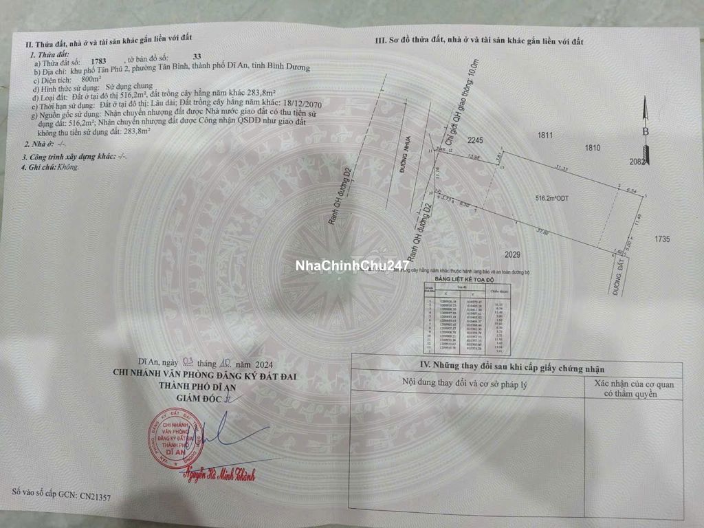 Dt đất 800m kho 600m có 516m thổ cư