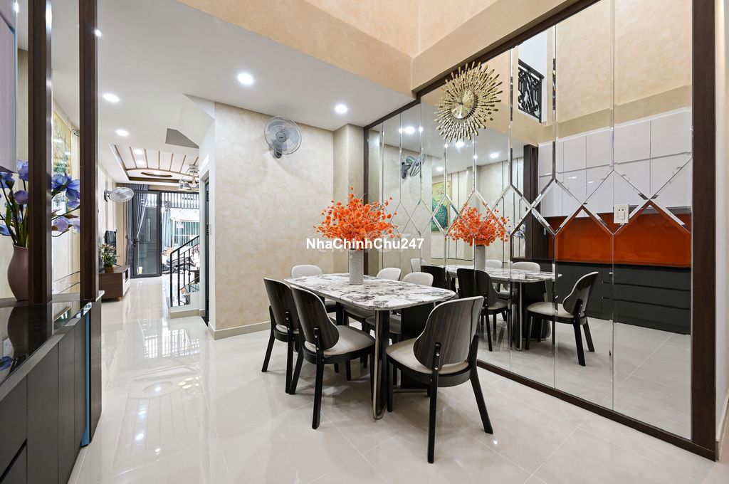 🏡🏡 [Chính chủ] Mở bán cặp nhà xây mới 100% sát MT Quang Trung P10. Kết cấu 1 trệt 1 lửng 3 lầu gồm 5PN, phòng khách, phòng bếp, sân thượng trước sau. Cách MT chỉ 30m. 👉Căn 1: 3,7 x 13m (nở hậu), công nhận 46,1m2. DTSD 164m2. Giá 7,9 tỷ TL 👉Căn 2: 3,7 x 13m (nở hậu 4,5m), công nhận 50,5m2, DTSD 166m2. Có cửa sau thoáng mát. Giá 8,1 tỷ TL 👉Công năng cực tốt (hiếm có): có tới 5pn, phòng khách + bếp + phòng thờ + Sân thượng trước/ sau 🌹HH1% thân gửi ace. Liên hệ Call/zalo