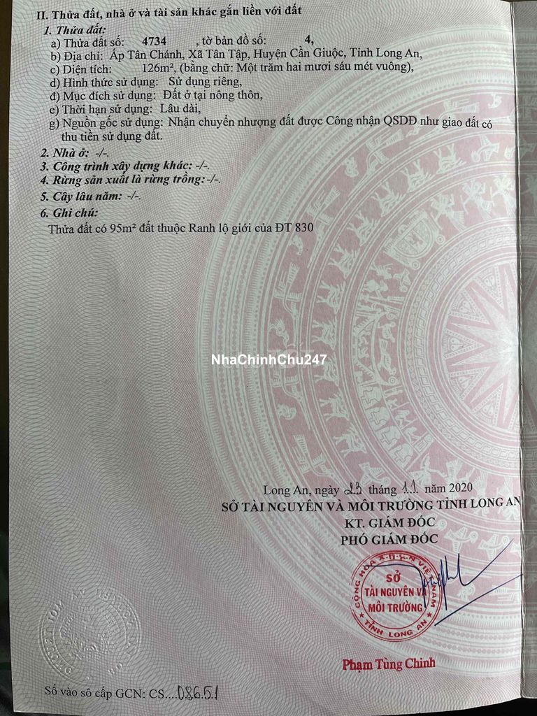 Dự án: Thông tin chi tiết: Chính Chủ cần bán nền đất MT 830 - xã Tân Tập DT: 5m x 26m - full thổ cư - quy hoạch KDC hiện hữu Giá : 3 tỷ Hoa hồng : 2%