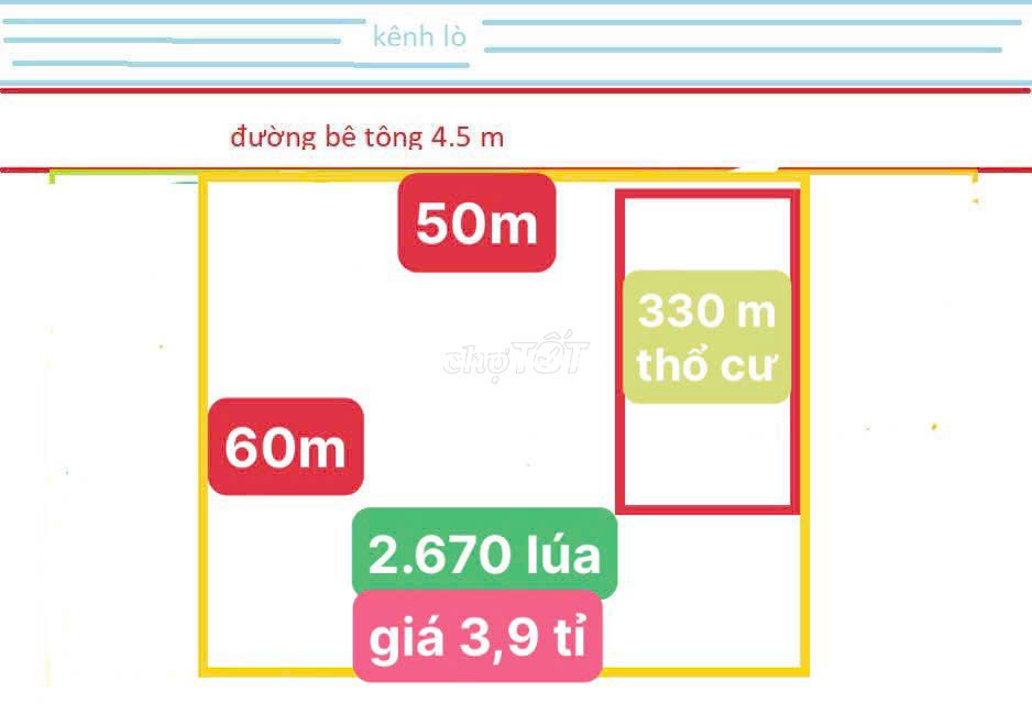 Chủ gởi Mặt tiền đường đan 5m - 1 sẹt tl 823 300m, Dt 1 :👉50x60 có 330m thổ còn lại lúa giá 3ty900 Dt 2 :👉 7,2m dài 100m nở hậu dt 2500m có sẵn kho 200m2 giá 2ty500tr Dt 3 👉 2 nền 5x33 đất thổ sổ giá 420tr / lô đất thuộc xã hoà khánh - tây ninh mới ( hoà khánh tây cũ ) quan tâm lh e biết thêm chi tiết