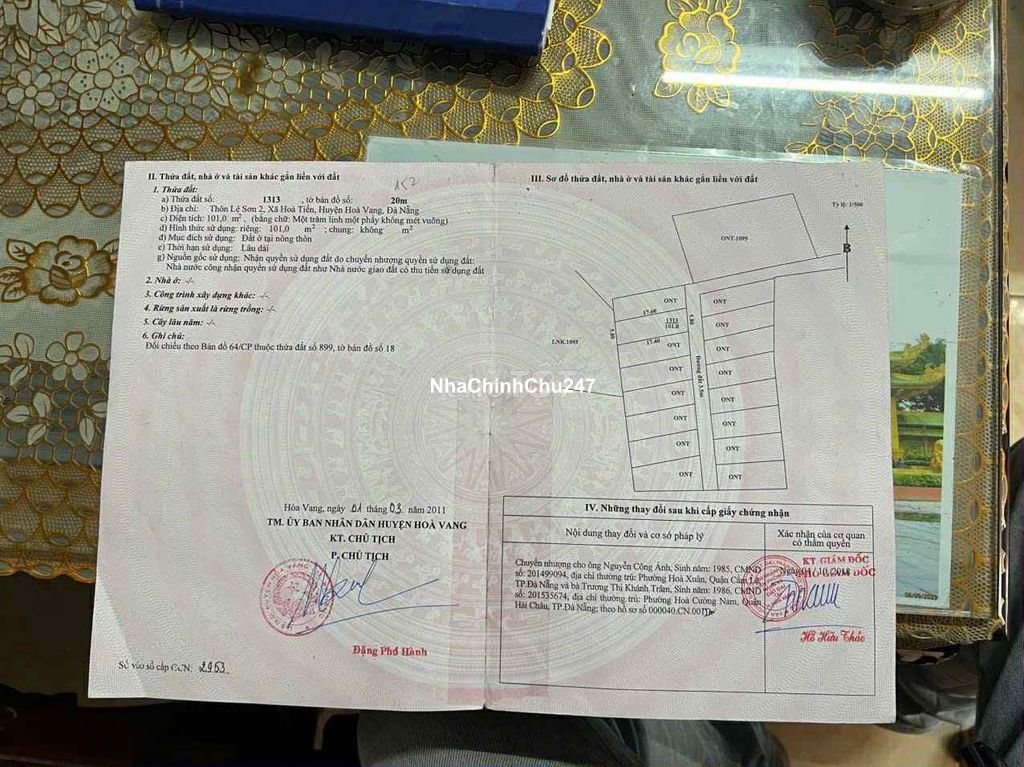Chủ nợ bank để lại lô đất giá rẻ thuộc thôn Lệ Sơn 2- Hòa Tiến- tp Đà Nẵng - Lô đất 2 mặt tiền kiệt cực đẹp làm nhà thoáng mát - đường bê tông thông rộng 5m, cách đường nhựa chính chỉ 50m - Diện tích 101m2- ngang gần 6m - Vị trí đẹp: cách chợ Lệ Trạch 1.5km, gần trường học , cơ quan hành chính công.. - Khu dân cư đông đúc , nhà cửa khang trang, - đất như hình đăng, sổ hồng chính chủ - Cam kết đất sạch sẽ, không dính quy hoạch, không tranh chấp - Gía bán nhanh chỉ 1 tỷ 280 triệu - Liên hệ xem đất và lv trực tiếp chủ đất