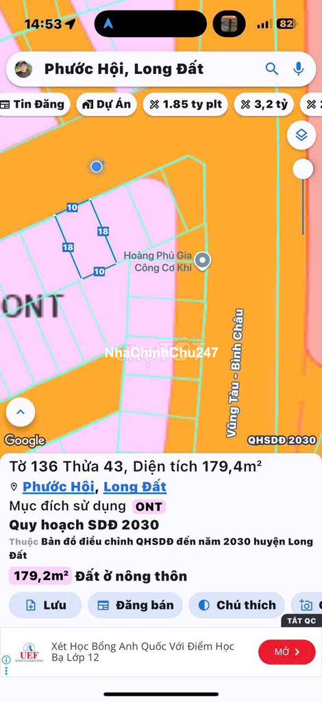 Dt: 180m2-10x18- full thổ cư Đường Hàng Dương rộng đẹp vị trí đất sát đường ven biển Hướng Tây Bắc Giá: 950 Triệu Ưu điểm nổi bật: Lô đất sở hữu đường lớn, ô tô di chuyển thoải mái, thuận tiện cho sinh hoạt và kinh doanh. Khu vực dân cư hiện hữu, môi trường sống an ninh, yên tĩnh. Đặc biệt, vị trí gần biển rất lý tưởng để xây dựng nhà nghỉ dưỡng, homestay hoặc đầu tư lâu dài sinh lời. Pháp lý rõ ràng, hỗ trợ sang tên nhanh chóng, giúp khách hàng an tâm khi giao dịch. Liên hệ em Yến *** để được tư vấn thông tin chi tiết