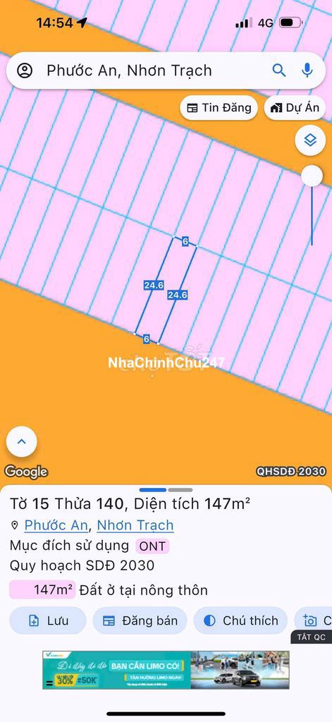 Diện tích 6x24,5( 147m2), giá chỉ 3,2 ti