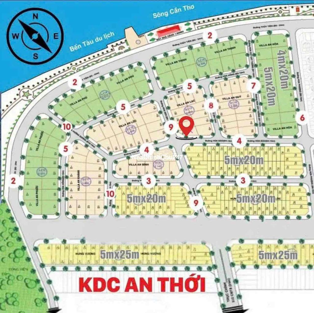 ❌NỀN HIẾM VỊ TRÍ SIÊU ĐẸP 202.🏕️🏕️NỀN BIỆT THỰ GÓC 2 MẶT TIỀN TRỤC CHÍNH KDC AN THỚI Q.BÌNH THỦY TP CẦN THƠ 📍 Vị trí: Góc 2 mặt tiền đường số 9 & đường số 4. Trục thông thẳng xuống bờ kè view sông Hậu. Kế trung tâm Ninh Kiều. 📐 Diện tích: 7.25m (Hậu 13.3m) x 22m = 193m2 ⚖️ Pháp lý: Thổ cư 100%. 🌤️ Hướng: Tây Bắc - Tây Nam. 🚗 Lộ giới: 15m (4m - 7m - 4m) 🧧🧧 Giá bán: 6 tỷ 500 triệu ☎️☎️Liên hệ: Thịnh - Cảm Ơn Quý Khách Đã Xem Tin ! -