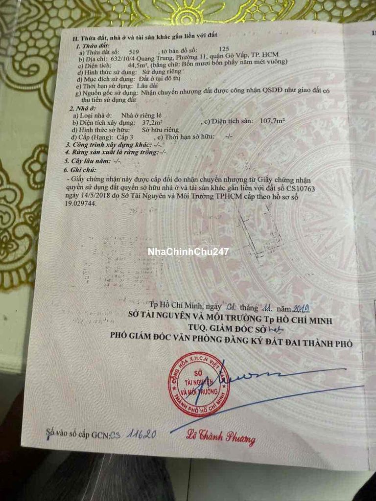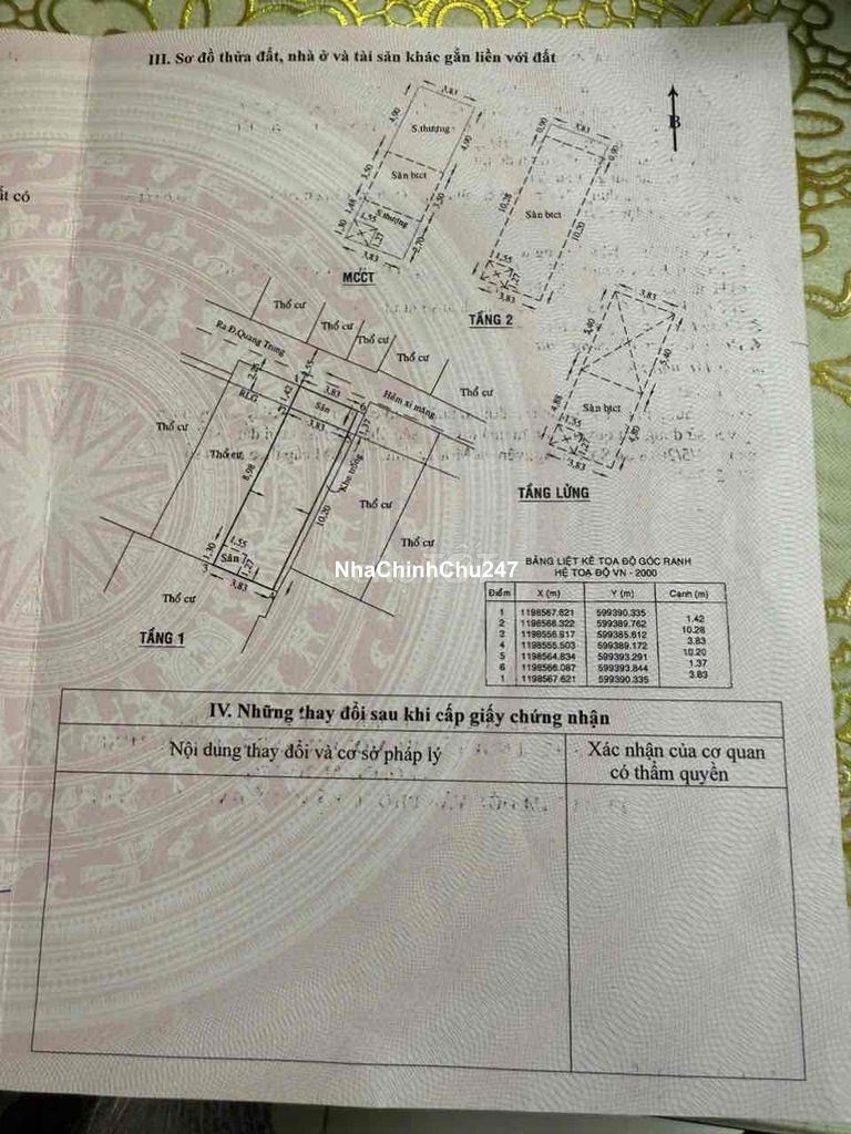 Nhà Bán Ngay Trung Tâm Phường 11 GV Đối Diện Siêu Thị TARMART. Trường Học Ngoại Ngữ VUS . Gần chợ Hạnh Thông Tây 🏠 Địa chỉ Quang Trung phường 11 GV ➖ Giá 5 tỷ 850 bớt Lộc ➖ Diện tích ngang 3.85 m dài 12 m ➖ Công năng đúc 1 trệt 1 lững 2 lầu sân thượng trước sau. Gồm sân để xe PK. PB có 3 PN 3 WC 1 phòng thờ 1 phòng giặt. Nhà sổ hồng chính chủ bao sang tên