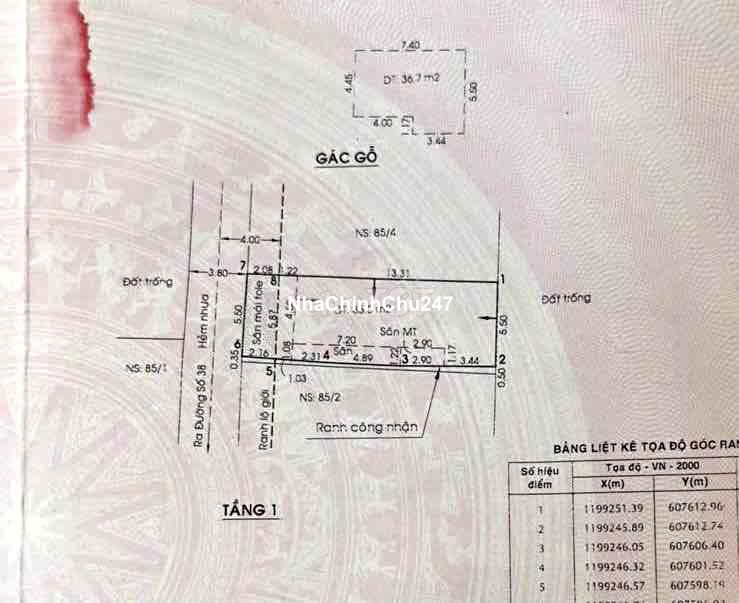 Dự án: Thông tin chi tiết: 👉 THỦ ĐỨC - NHÀ CHÍNH CHỦ, HẺM XE TẢI, GIAO THÔNG THUẬN TIỆN, SẦM UÂT !!! - Vị trí gần: đường Phạm Văn Đồng, 20m ra đường 38 Hiệp Bình, cách chợ Hiệp Bình khoảng 200m, đi vào trung tâm Tp. HCM thuận tiện, và nhiều tiện ích xung quanh,... - Địa chỉ : 85/2A Đường 38, Khu phố 75, Phường Hiệp Bình, Tp.HCM - Hiện trạng: Nhà cấp 4, trên có gác, chia làm 2 phòng. Điện 3 pha, nhà trống vào ở ngay. - Đầy đủ hồ sơ, giấy tờ. * Chiều ngang: 5,5m. * Chiều dài: 17m. * Tổng diện tích công nhận: 93,4m -------------------------------------------- - Giá bán: 9,84 tỷ - Phù hợp đầu tư cho thuê, kinh doanh, nhà xưởng hoặc xây nhà phố,... - Alo cho Tuấn để xem nhà nhé! Người thân nhờ bán, không qua trung gian, cảm ơn!