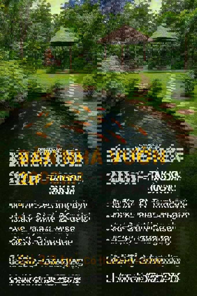 Tôi chính chủ có căn nhà vườn cần bán. Tổng diện tích 2000m2. Trên đất có căn nhà cấp 4 đầy đủ nội thất như hình. Điện,nước,internet đầy đủ. Toàn bộ DT đất đã xây rào cao 3m. Máy nước nóng NLMT,hệ thônhs camera. Trên đất có chuồng trại chăn nuôi heo rừng,gà. Cuối đất có ao cá tự nhiên