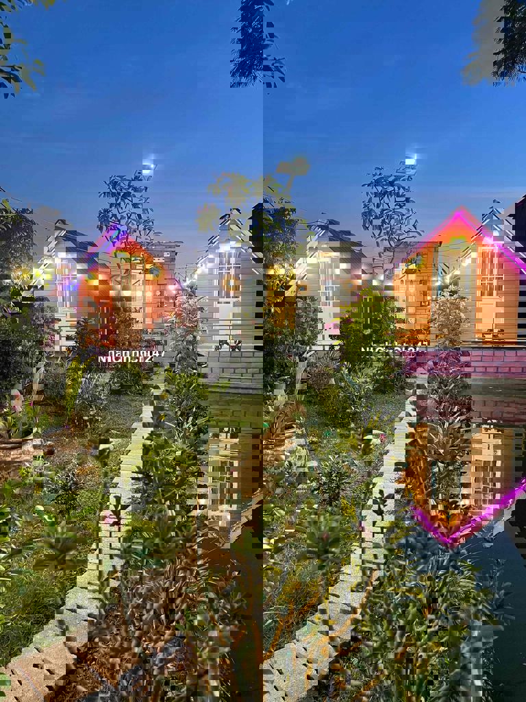 Nhà vườn đẹp lung linh: diện tích hai ngàn sáu trămm2 có 3 trăm m2 thổ cư 2 P ngủ, 2 tolel , 2 bungalow , 1 sảnh cf , 1 sảnh karaoke, có hồ nước đẹp, có chuồn chim Bồ câu pháp, có chuồn chim trỉ đang đẽ trứng, và có chuồn gà đang đẻ trứng, có vườn cây ăn trái các loài đang có trái ăn, có bông hoa các loại tha hồ ngắm, có điện nước máy mạng ff chính chủ, đậu một lúc 4 chiếc xe hơi trong sân, cách chợ 2 km , chính là nơi nghỉ dưỡng yên tịnh trong lành xanh sạch đẹp - cách quốc lộ 1 - 2 km 59/1 thôn Phú nghĩa xã hàm cường, hàm thuận nam tỉnh Bình thuận